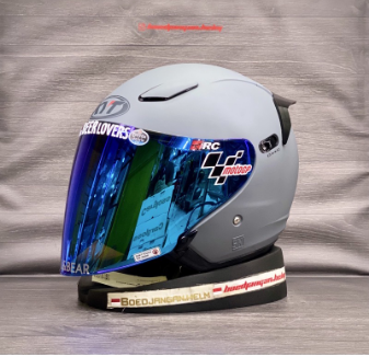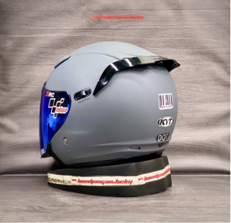 PAKET GANTENG KYT HELM DJ MAXI GORILLA GREY DOFF - FLAT VISOR IRIDIUM KYT - HALF FACE DOUBLE VISOR