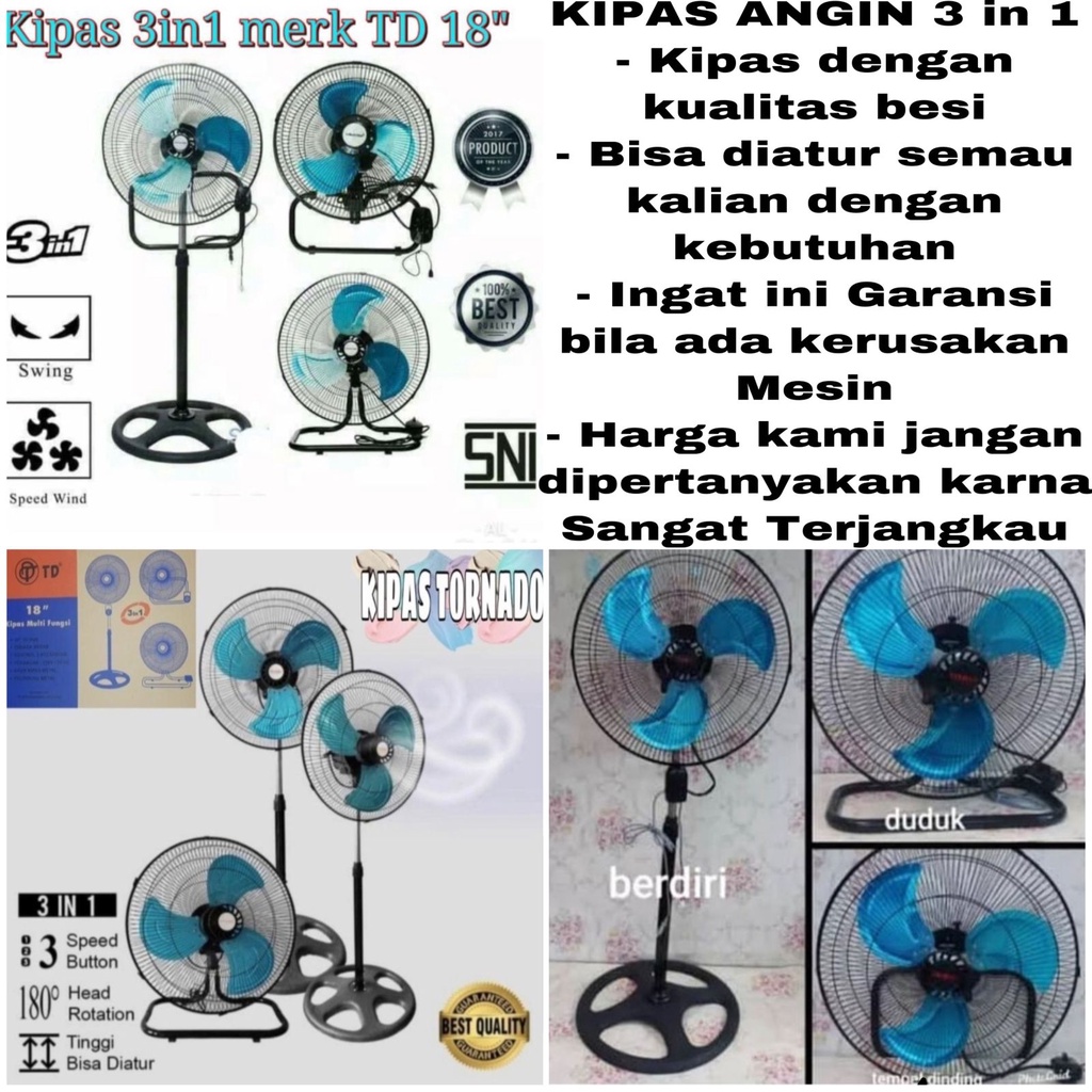 KIPAS ANGIN BESI TORNADO 3 IN 1 18INCH / KIPAS BESI MEJA DINDING BERDIRI FREE PACKING DUS VD