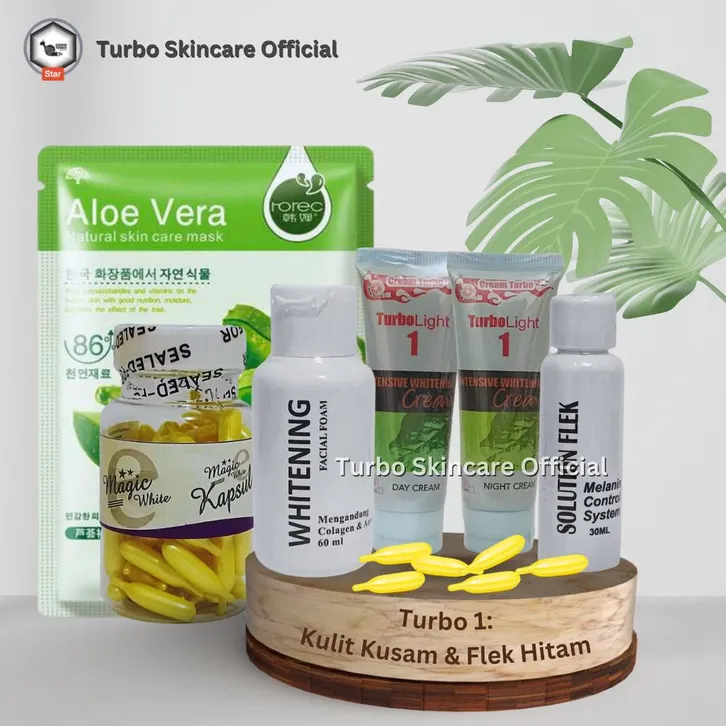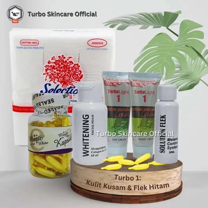 Paket Cream Turbo Ori Vit.60 Butir Kulit Kusam Flek Berminyak Jerawat Pemutih Wajah