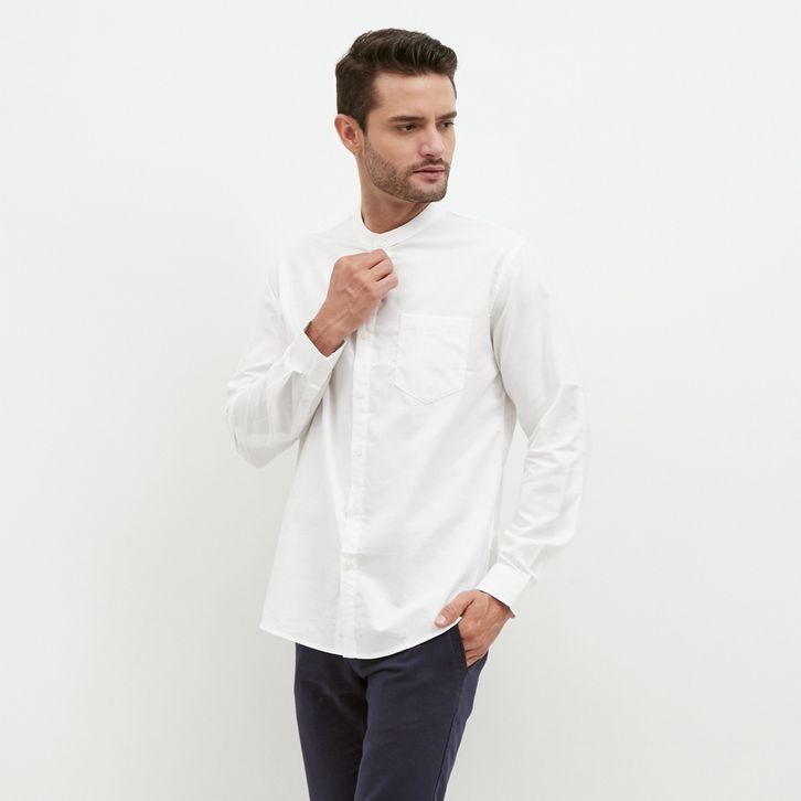 M231 Kemeja Pria Shanghai Polos Oxford Panjang Putih 1552A