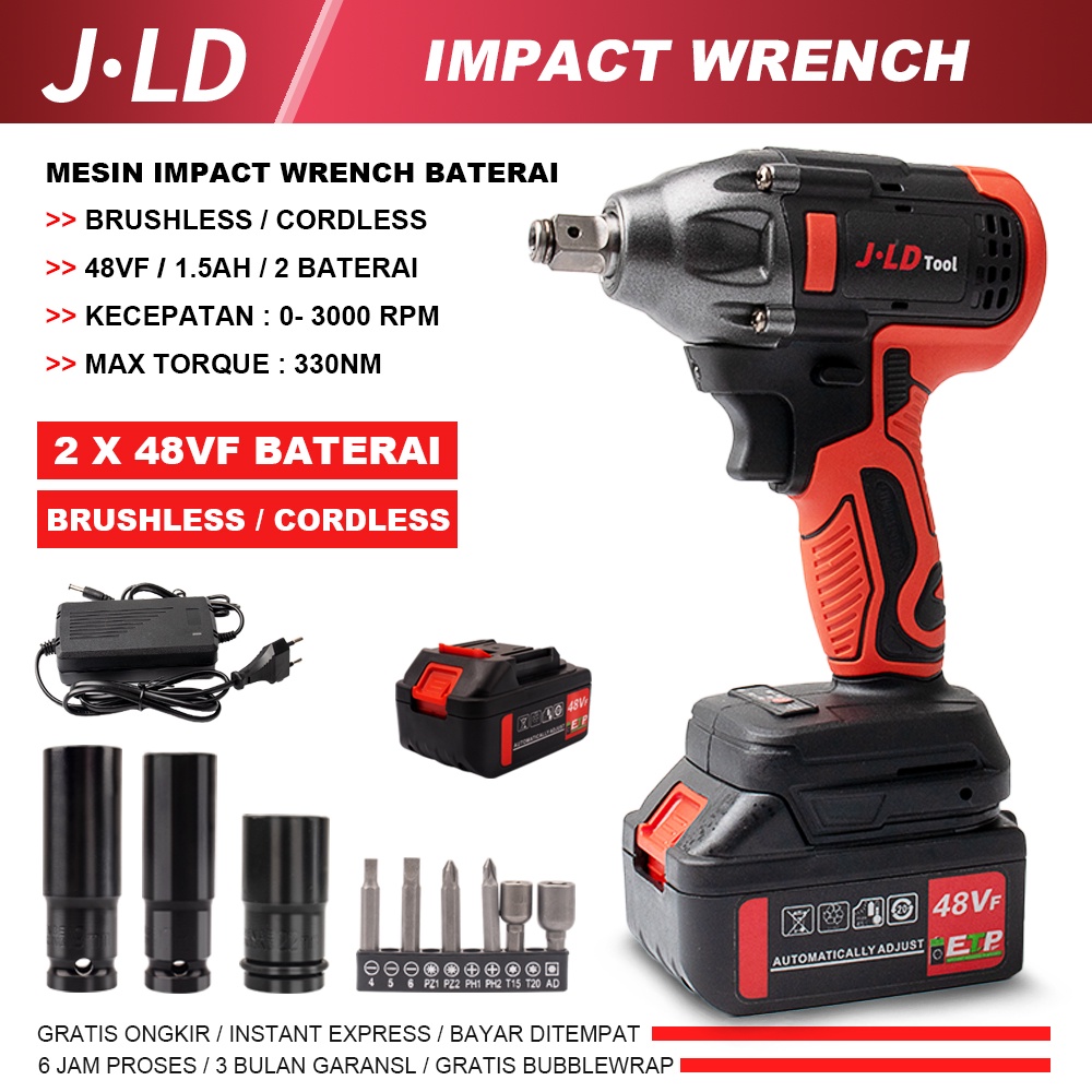 MESIN BOR BATERAI CORDLESS WRENCH BRUSHLESS MESIN BOR IMPACT JV88 48V UNTUK BAUT MOBIL 48VF LISTRIK