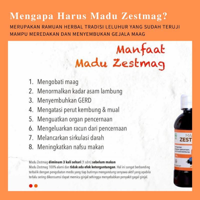 ZESTMAG MADU ORIGINAL OBAT SAKIT MAAG/ASAM LAMBUNG/MAAG KRONIS/NYERI ULU HATI/GERD