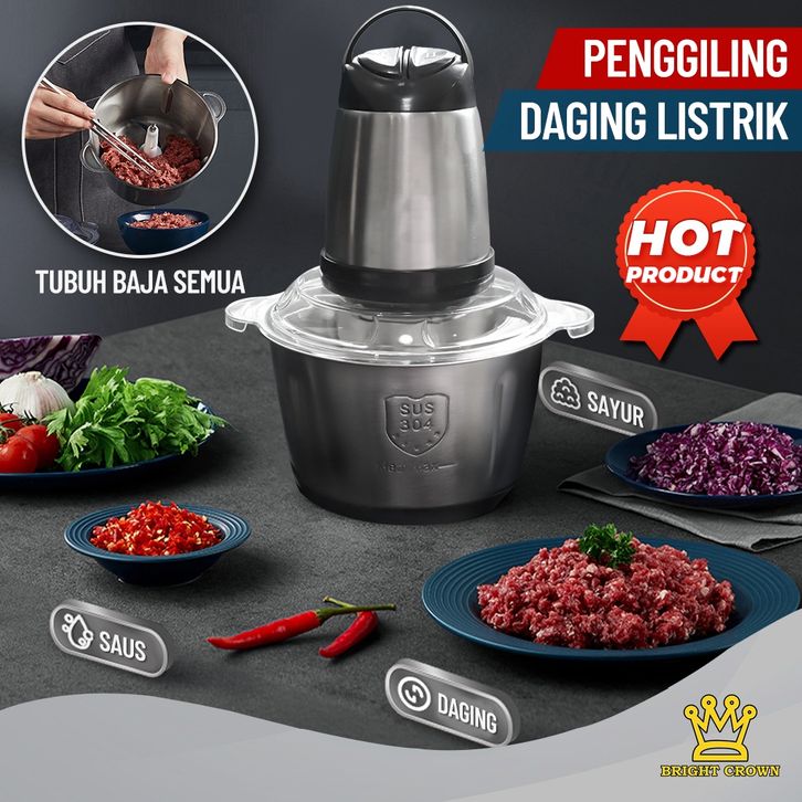 Blender Chopper Stainless Steel 2 Liter Penggiling Bumbu Daging Sayur Buah Food Processor Chopper Grinder