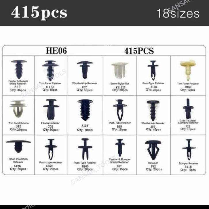 415 set Baut Rivet clip Fender Doortrim Bumper Dashboard klip Mobil