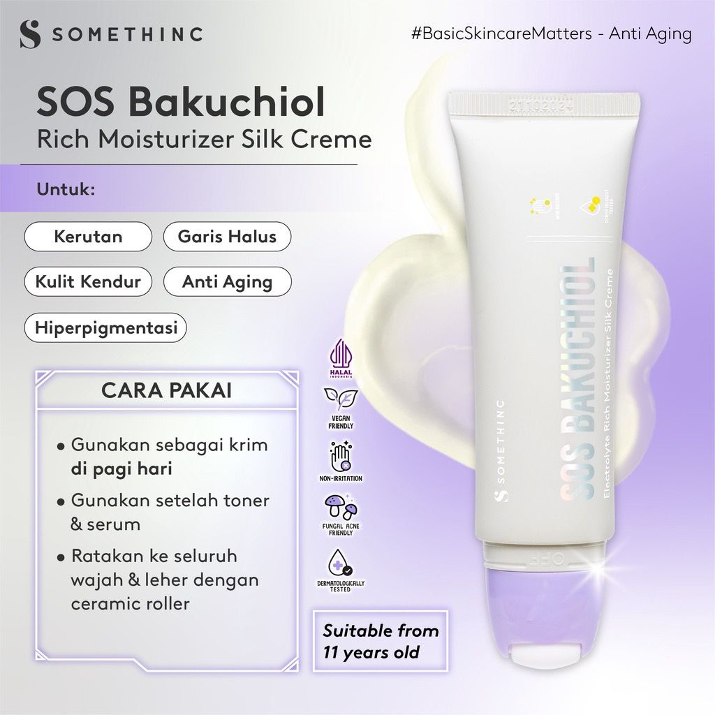BPOM SOMETHINC SOS Bakuchiol Electrolyte Rich Moisturizer Silk Creme Krim Pagi Pelembab Krim Wajah