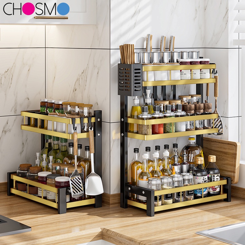 Rak Bumbu Dapur Penyimpanan Bumbu Penyelenggara Rak Susun Stainless Steel 2/3 Tier Rak Botol Rempah