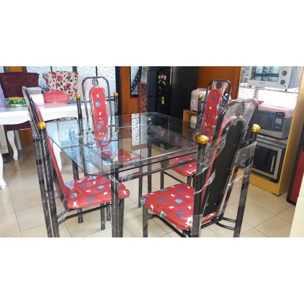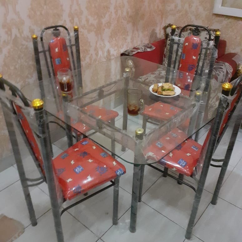Meja makan Kaca Minimalis 4 kursi Type Belgia