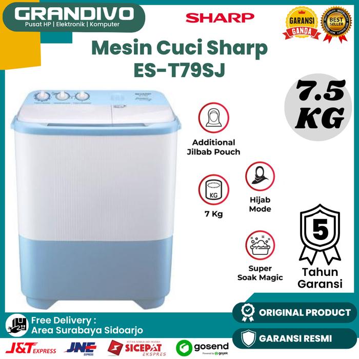 MESIN CUCI SHARP 2 TABUNG 7.5KG EST79SJ GARANSI RESMI - Grandivo