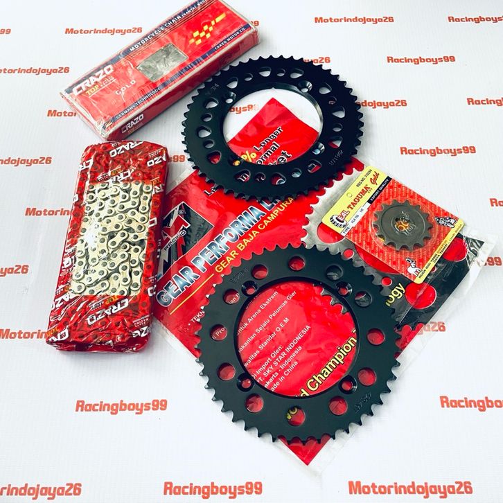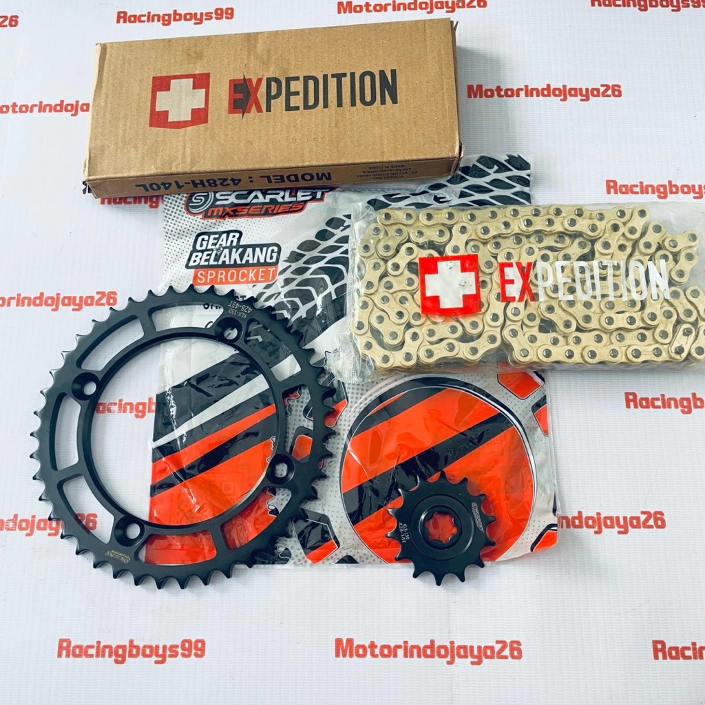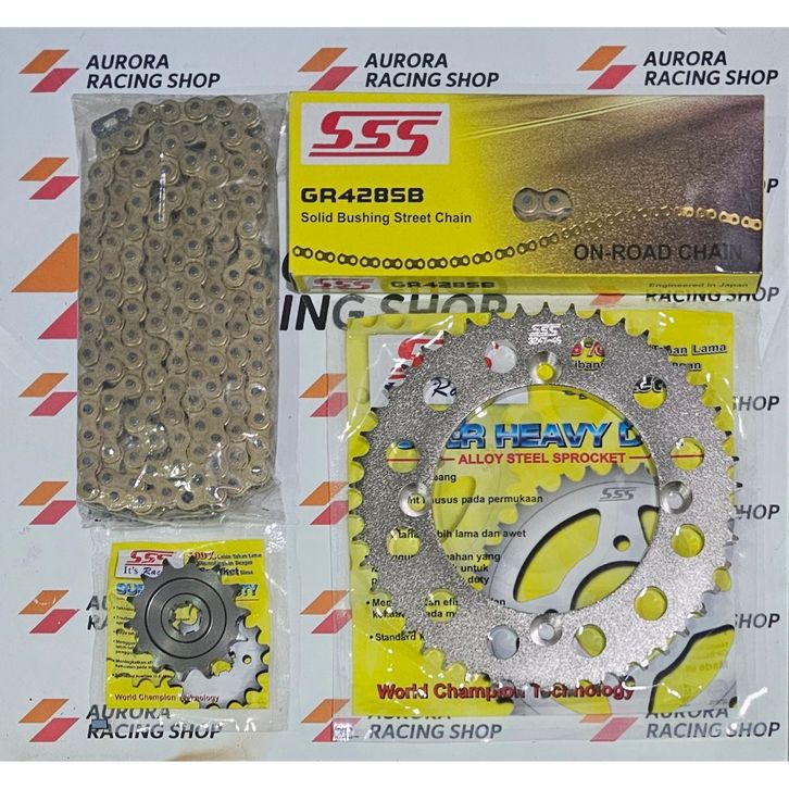 GEAR SET KLX 150 D TRACKER GIR SSS + RANTAI (GOLD) SUPERMOTO HARIAN 428H GER RANTE RACING 428