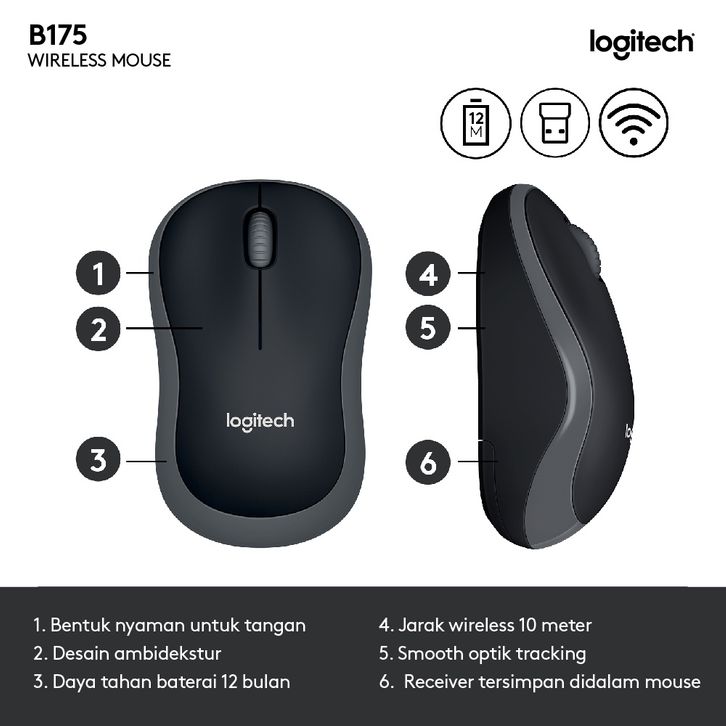 LOGITECH B175 MOUSE WIRELESS UNTUK WINDOWS, MAC, LINUX DAN CHROMEOS