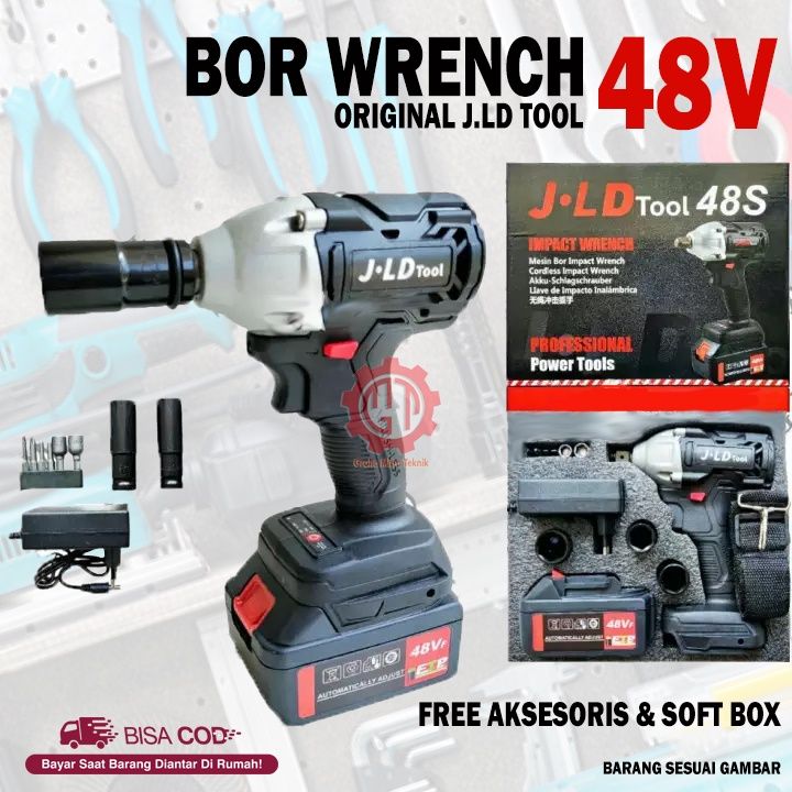 Cordless Impact Wrench 48V Brushless JLD 48S / Bor Pembuka Baut Baterai 48volt GRATIS ONGKIR
