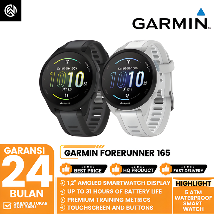 SMARTWATCH GARMIN FORERUNNER 165 ORIGINAL JAM TANGAN DIGITAL AMOLED PRIA WANITA ANTI AIR SMART WATCH WOMEN MEN