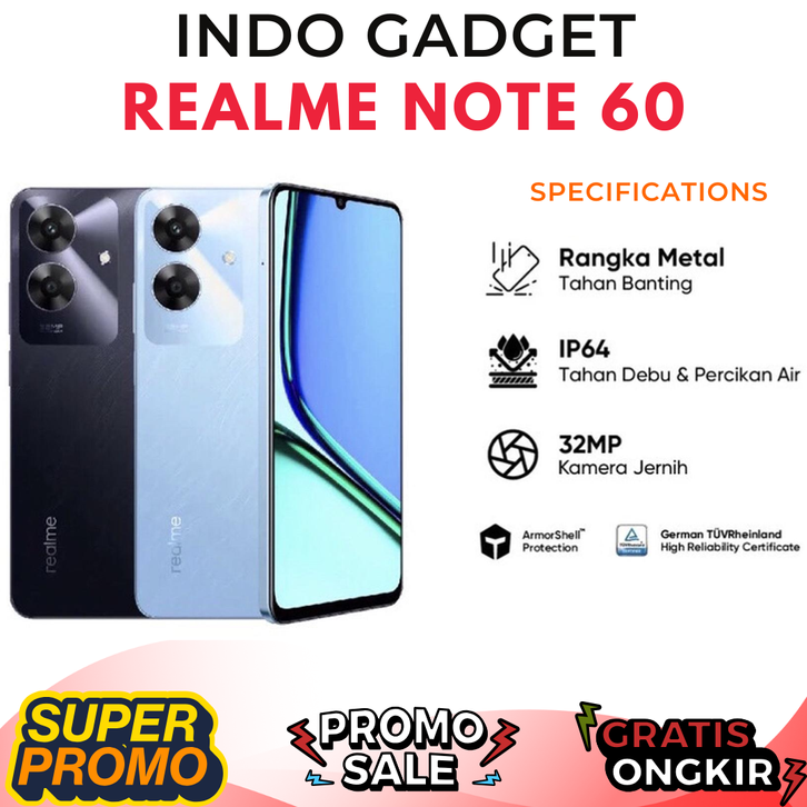 (BEBAS ONGKIR) realme note 60 6gb+128gb - 4gb+64gb garansi resmi indonesia (Unisoc Tiger T612, Android 14, 5000mAh)