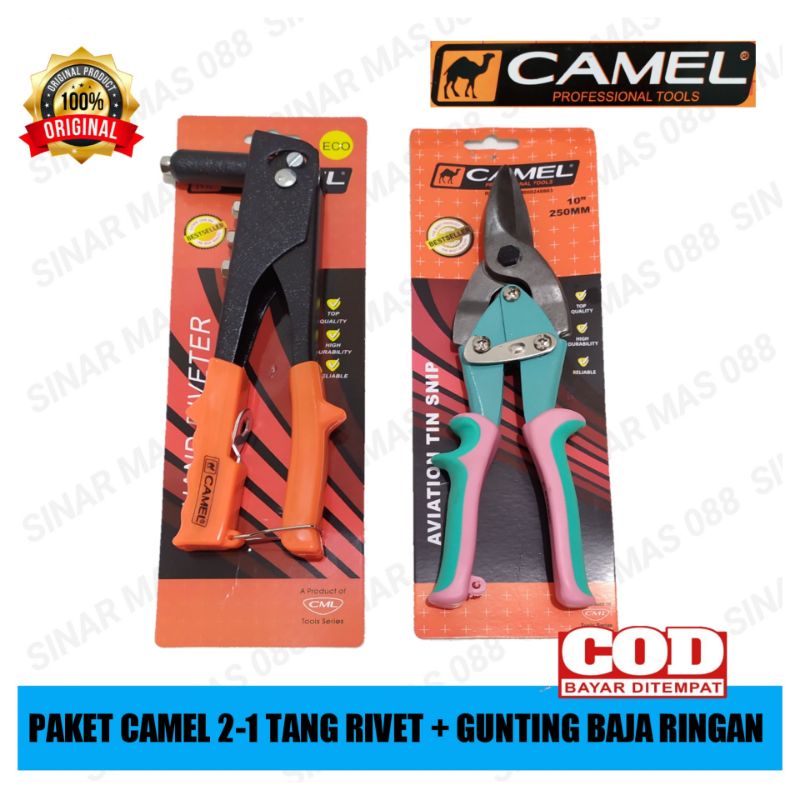 PAKET 2 IN1 TEKIRO & CAMEL TANG RIVET DAN GUNTING HOLLOW 10"/GUNTING BAJA RINGAN / HAND RIVETER 2PCS