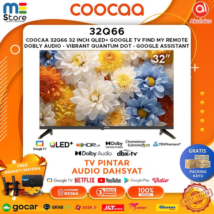 BARU ✓ Coocaa 32Q66 QLED 2K FHD 32" inch | Google Smart TV, Voice Control, YouTube, Prime Video App, HDR - coocaa q66