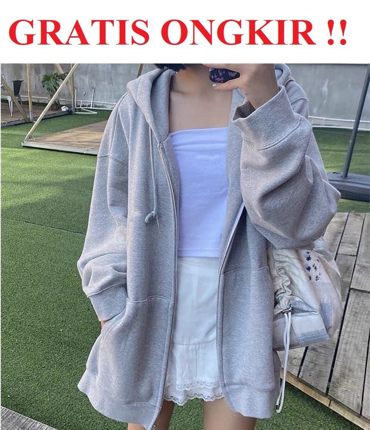Oversize Hoodie polos Zipper jaket Switer Wanita Korea dupe carla by libra