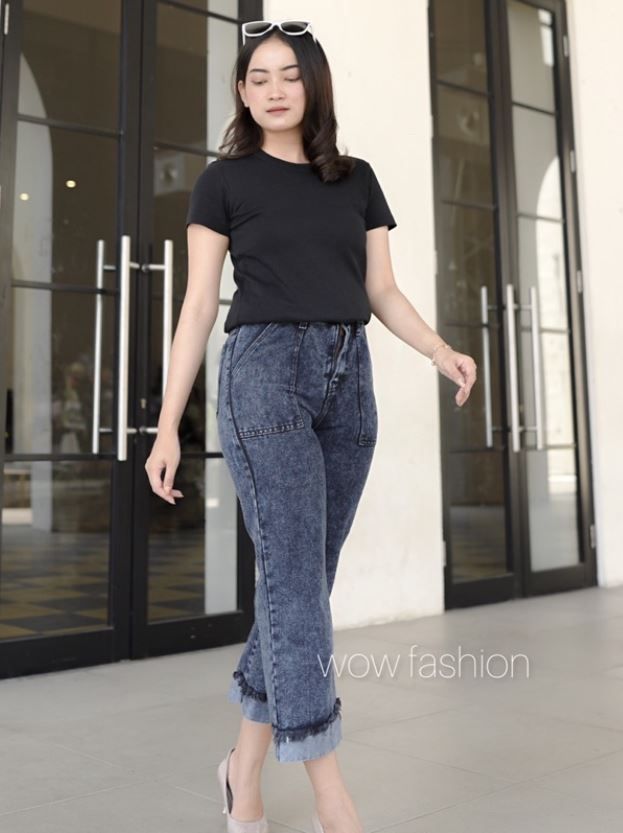 LIPAT BAWAH KULOT JEANS SNOW HIGWAIST WANITA SIZE : 27 - 30
