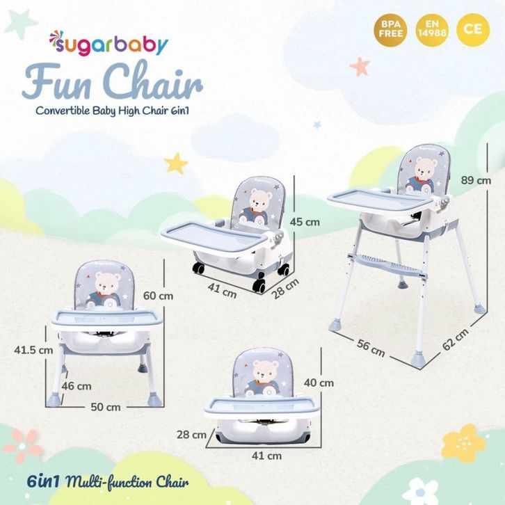 SUGAR BABY FUN CHAIR 6 IN 1 SUGARBABY KURSI MAKAN TINGGI 6 POSISI MEJA