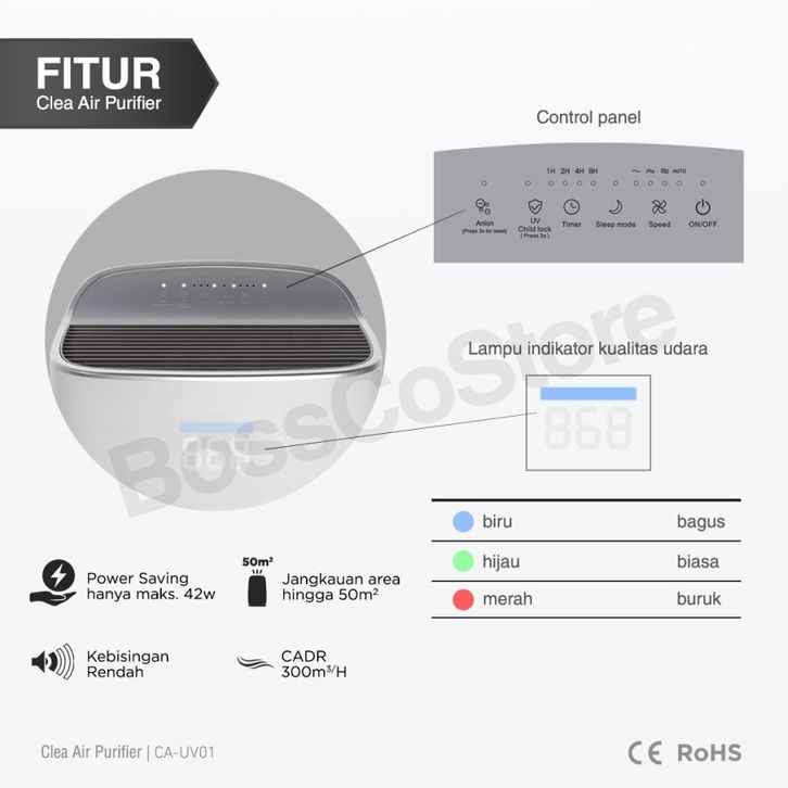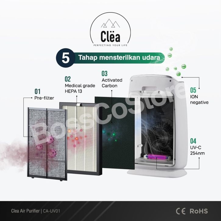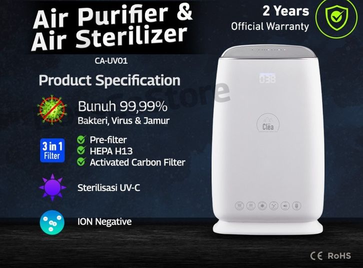 CLEA Air Purifier HEPA 13 Filter + UVC + Ion negatif / Anion