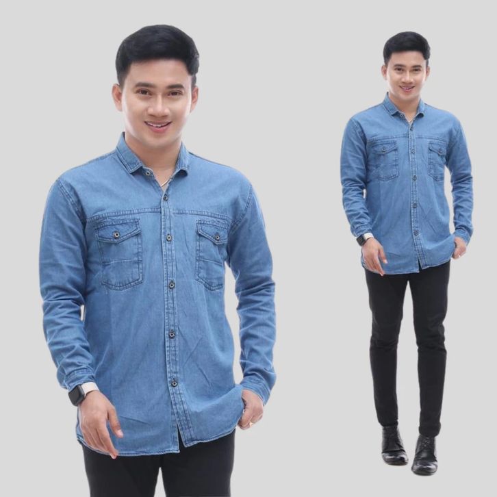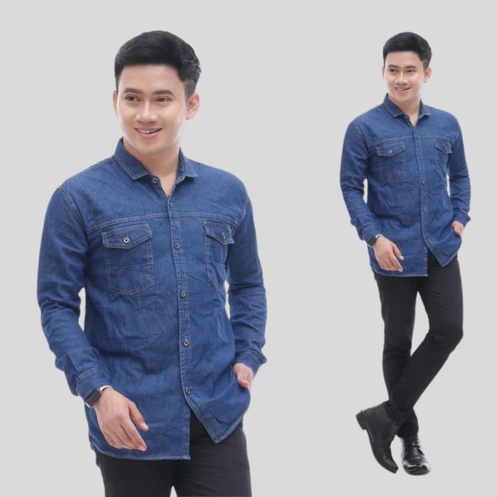 BAJU/ Kemeja Pria / Kemeja Jeans Lengan Panjang Jumbo Big Size XL-XXXXL Denim