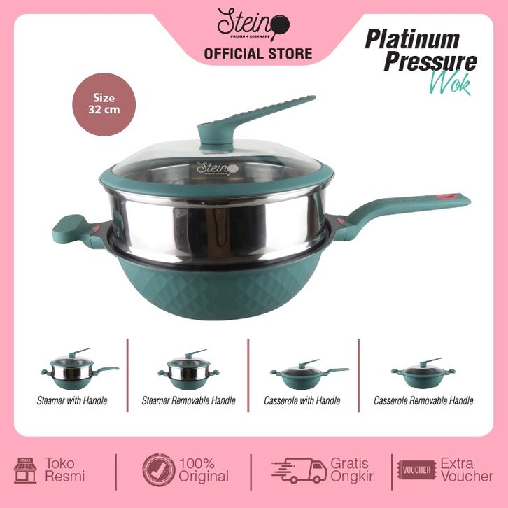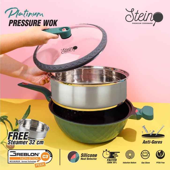 Stein Cookware Platinum Wok 32 cm Pressure Cooker Anti Baret/stein cookware panci resto/stein cookware platinum wok