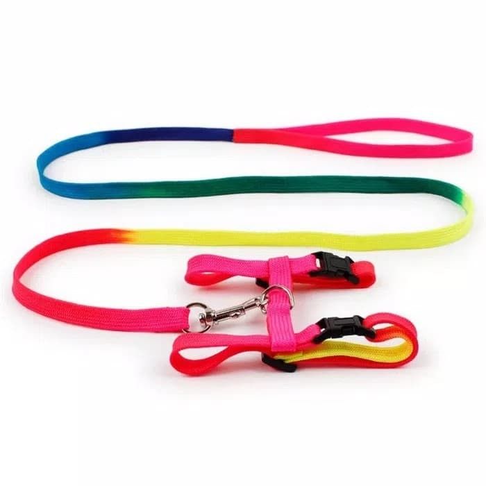 Harness badan H warna rainbow anjing kucing kelinci plus tali tuntun kitten