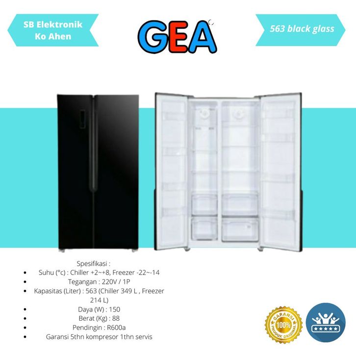 KULKAS GEA SIDE BY SIDE G2D 563 BLACK G2D-563 G2D563 Free Ongkir BOGOR
