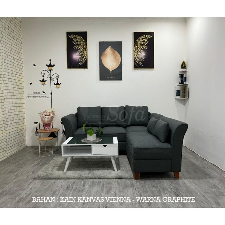 Sofa Ruang Tamu Modesty L Minang Eco 10 + Meja Retro Blotic