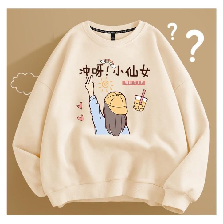 BUILD UP BOBA GIRLS Sweater Kpop Crewneck Sweatshirt Wanita Kekinian Oversize Fashion Outfit Ootd Korean Style Sweter