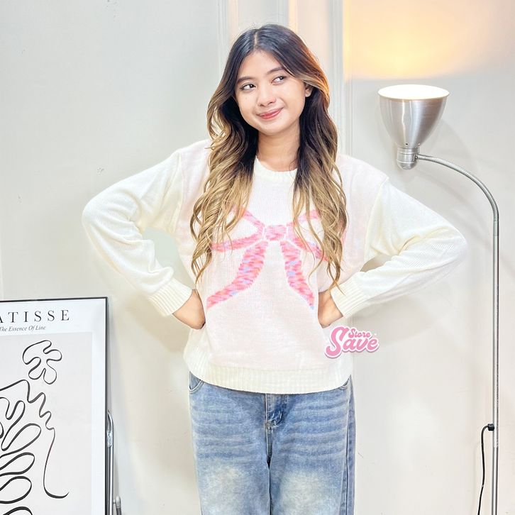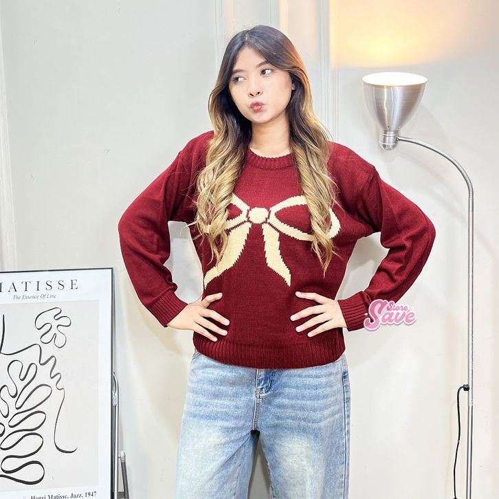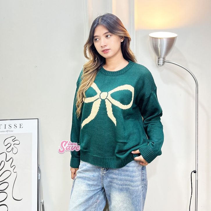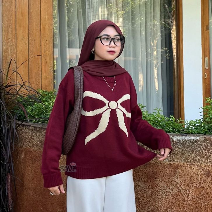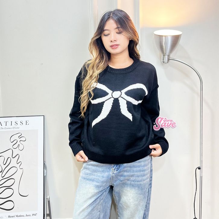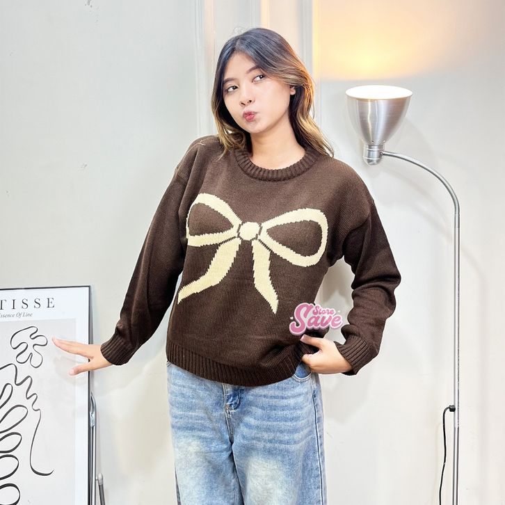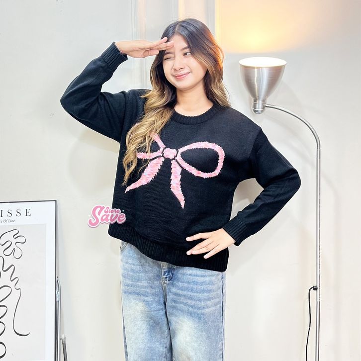 SWEATER RAJUT WANITA MOTIF PITA EVELYN SWEATER OVERSIZE KNIT BAHAN PREMIUM