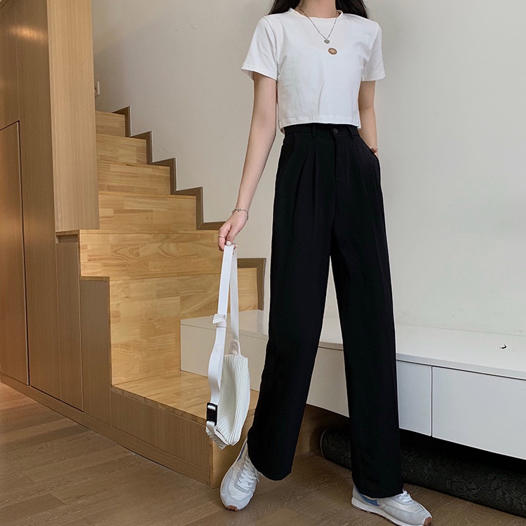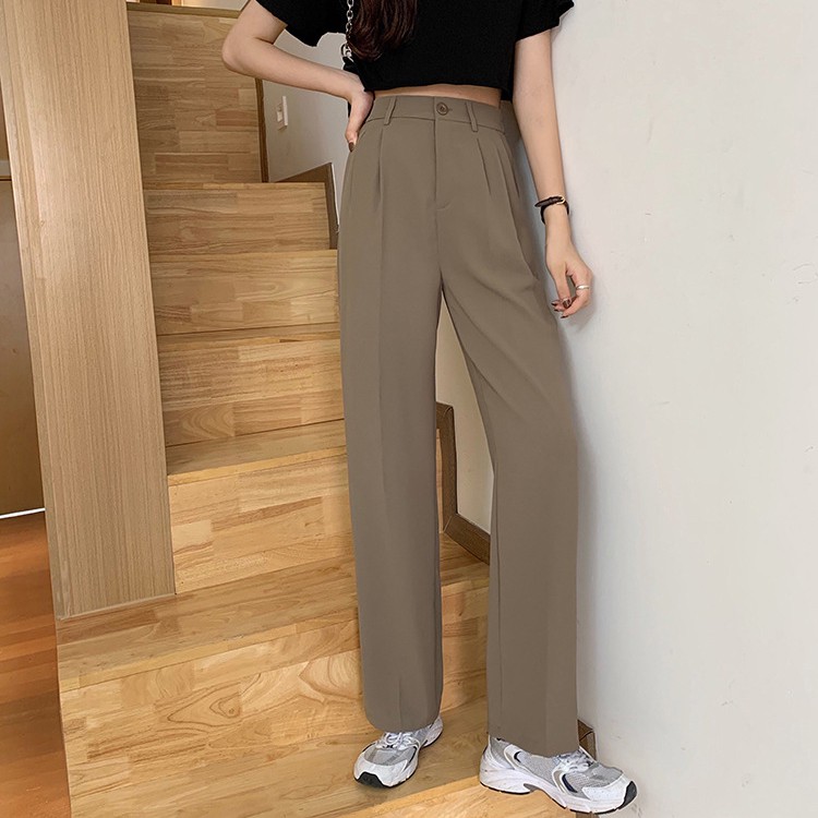 Musim Semi Baru Pinggang Tinggi Tipis Pinggang Elastis Celana Lurus Kaki Kasual Wanita