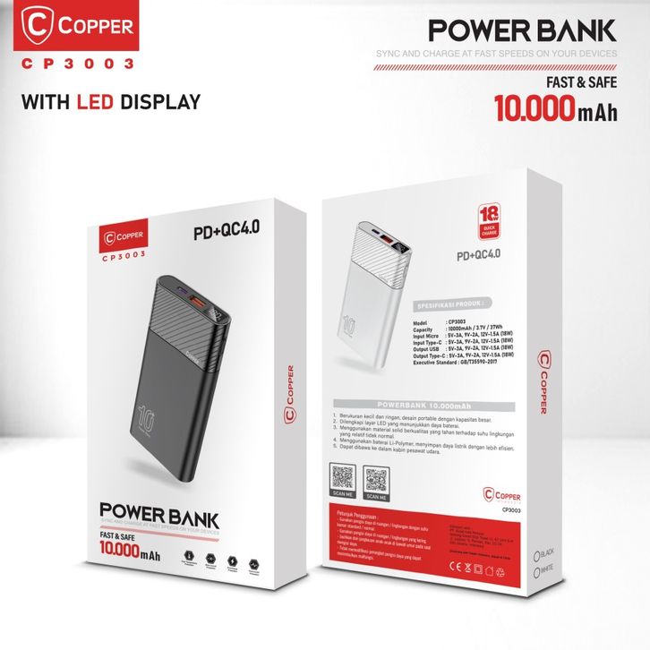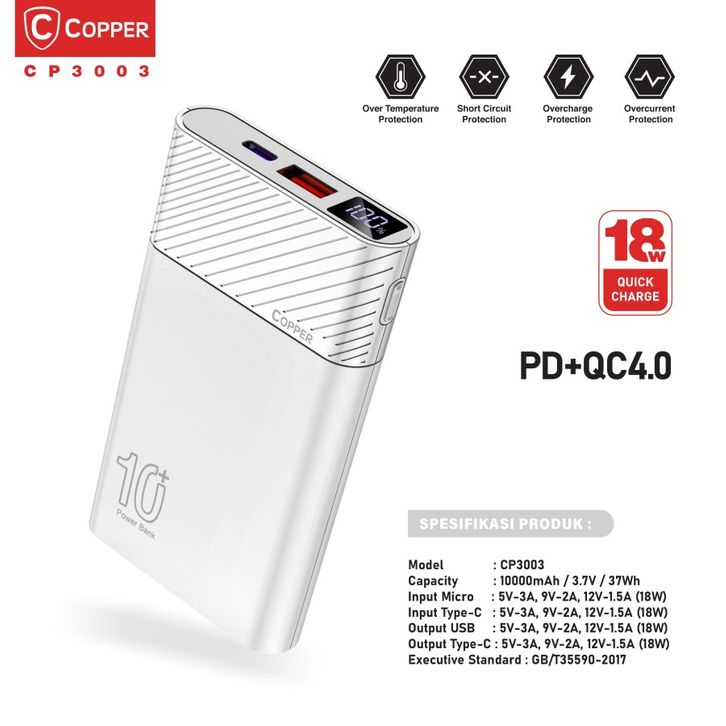COPPER POWERBANK 10000 MAH - CP3003 | QC 4.0 POWER DELIVERY 20W