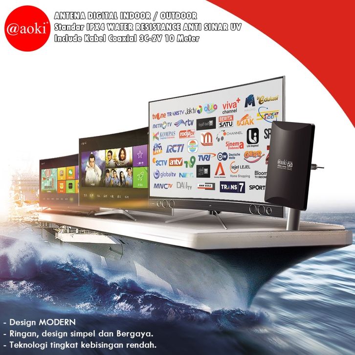 ANTENA 2 TV DIGITAL LUAR DALAM INDOOR OUTDOOR AOKI AT3000