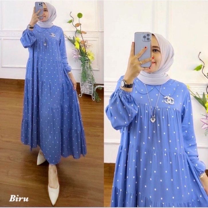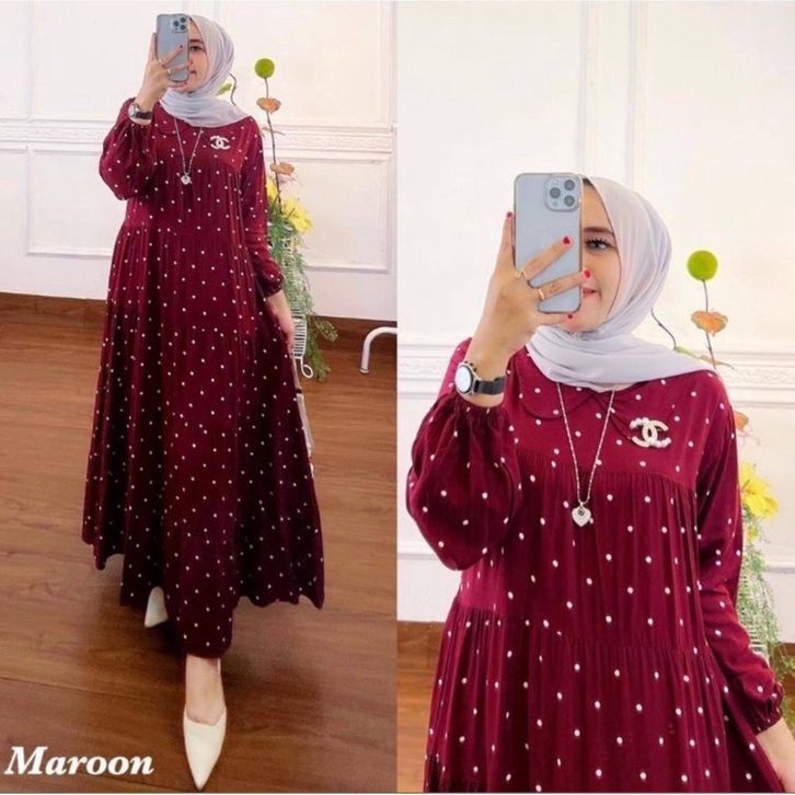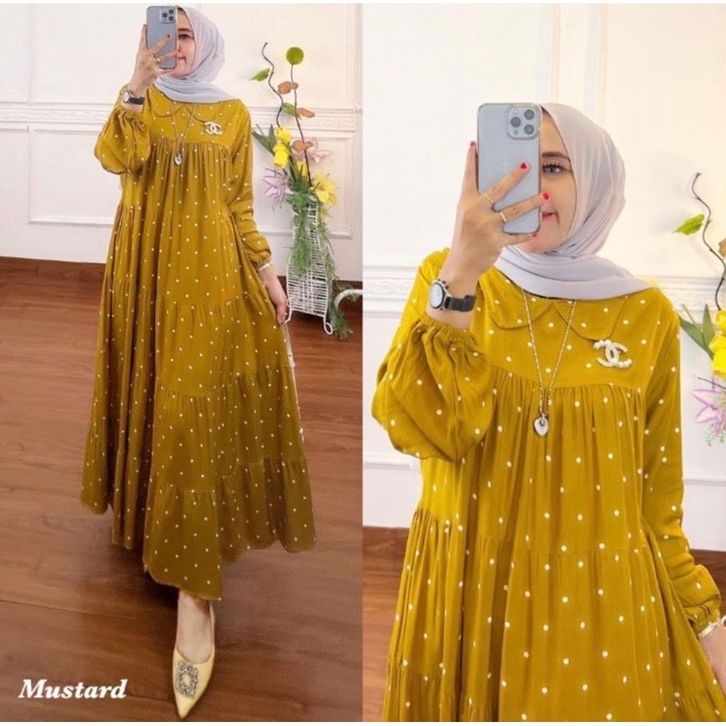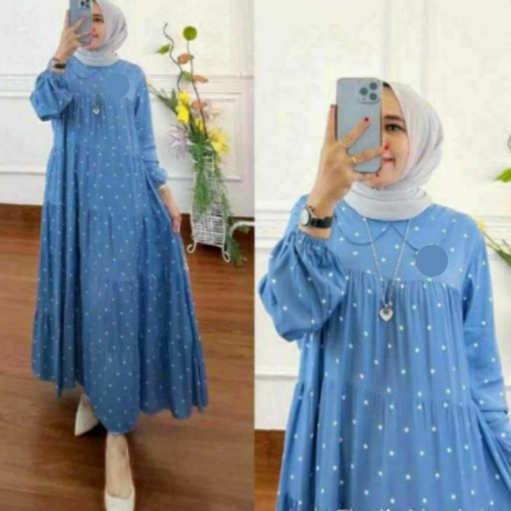 Midi Dress Jumbo Busui Motif Bahan Rayon / Dress Wanita Big Size Kekinian