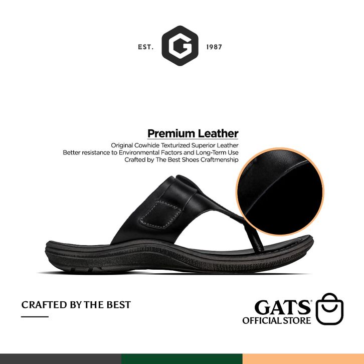 ORIGINAL SANDAL PRIA GATS DEWASA SANDAL KULIT GATS HG286 HITAM TERBARU 2025 SANDAL SLIP ON