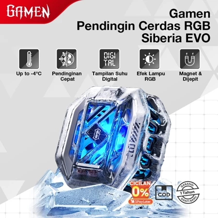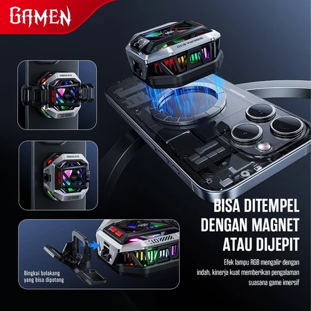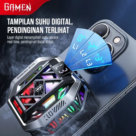 GAMEN Siberia Evo Funcooler Fan Cooler Hp Gaming Magnetic RGB Light Up to -4°C LED Display Dengan Klip Penjepit Kipas Hp