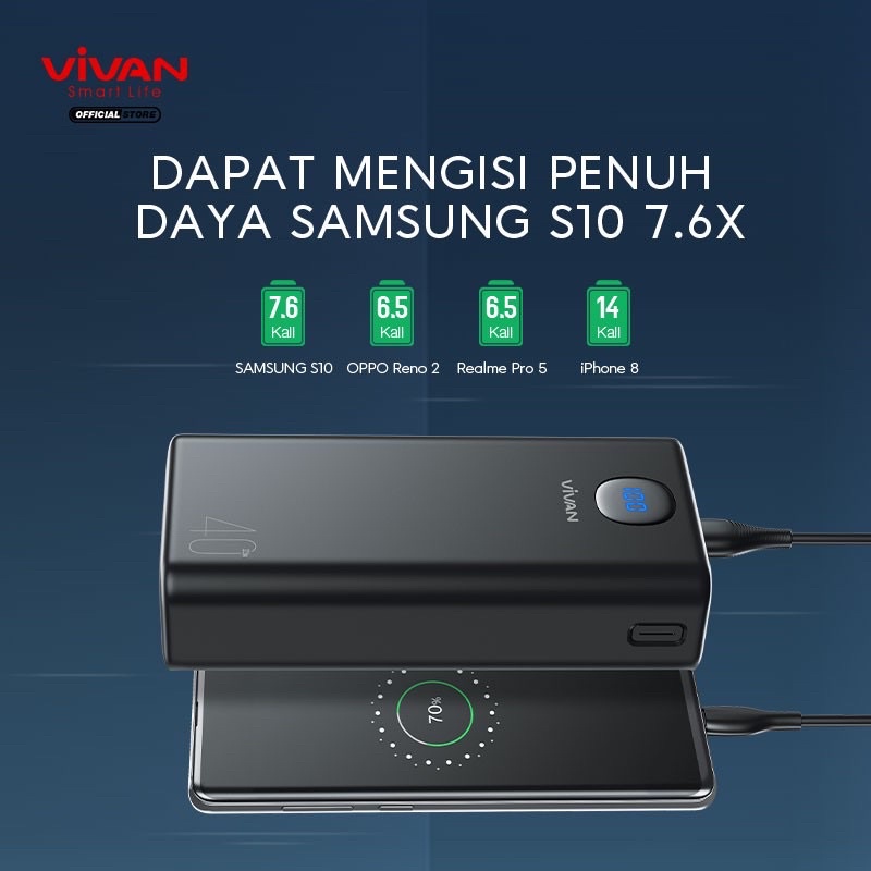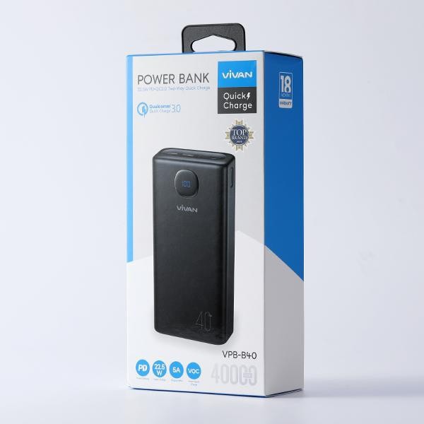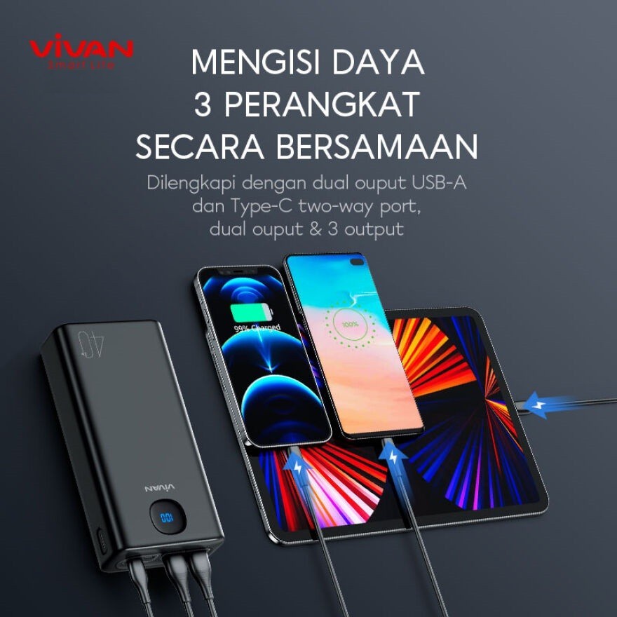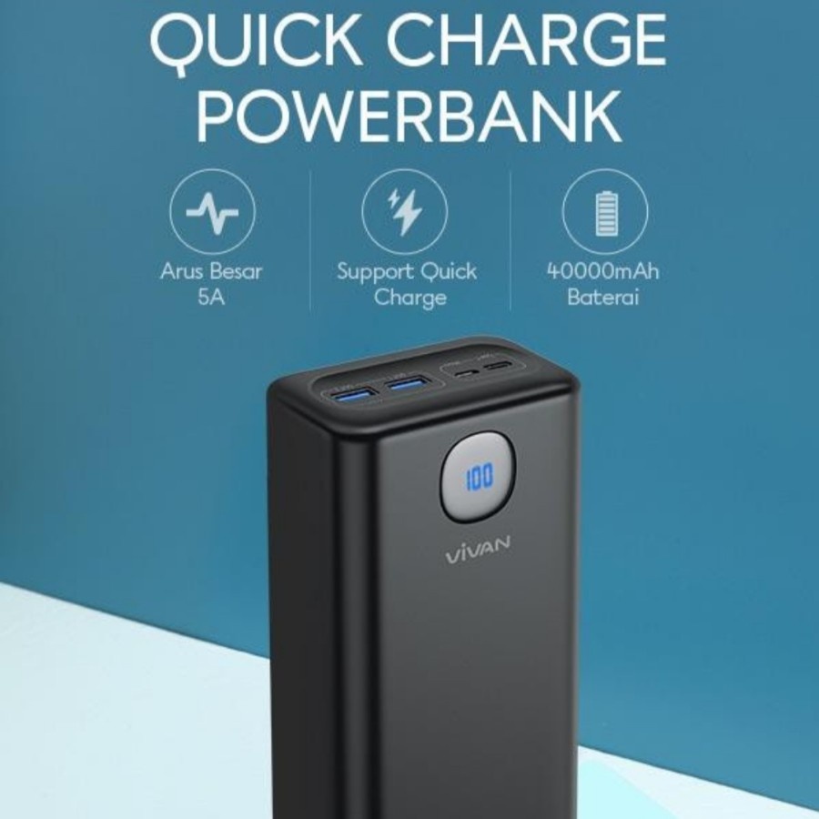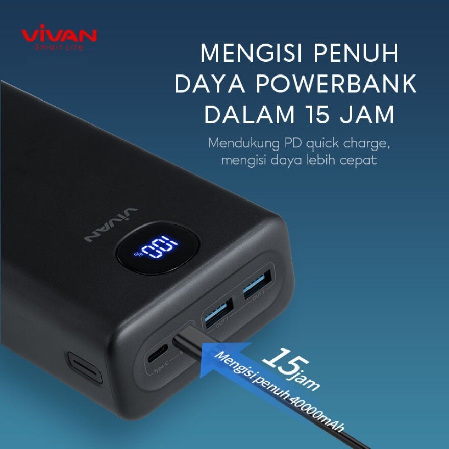 VIVAN Power Bank VPB-B40 Powerbank LED 40000mAh Power Delivery Quick Charge 3.0 Garansi Original