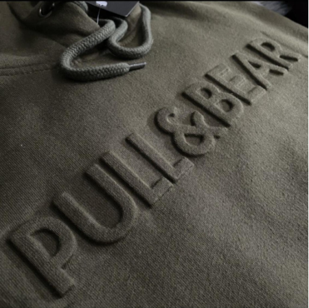 Hoodie Sweater Pull & Bear Emboss 3D Font Timbul Full Lebel dan Hantag