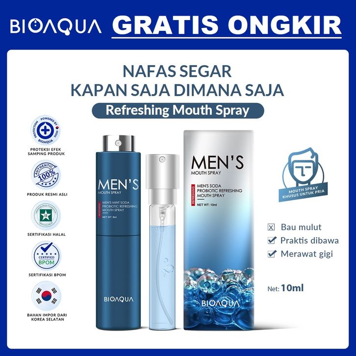 BIOAQUA Men's Soda Probiotic Refreshing Mouth Spray untuk Bau Mulut Parfum Mulut Praktis dibawa 10ml Ultra Fine Mist,Mas