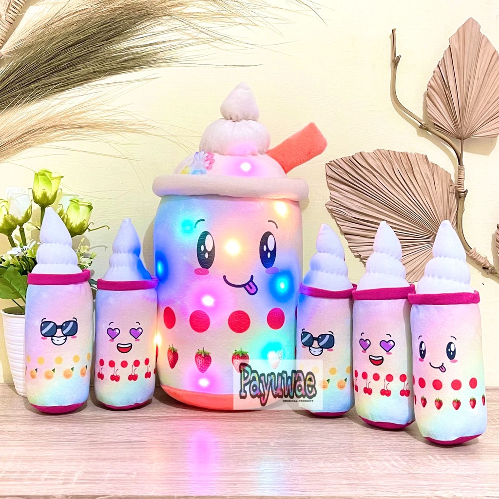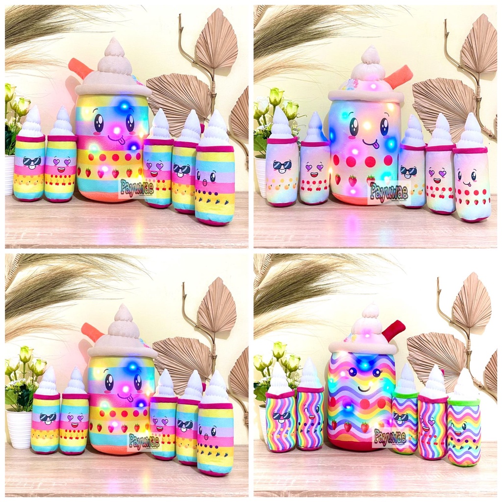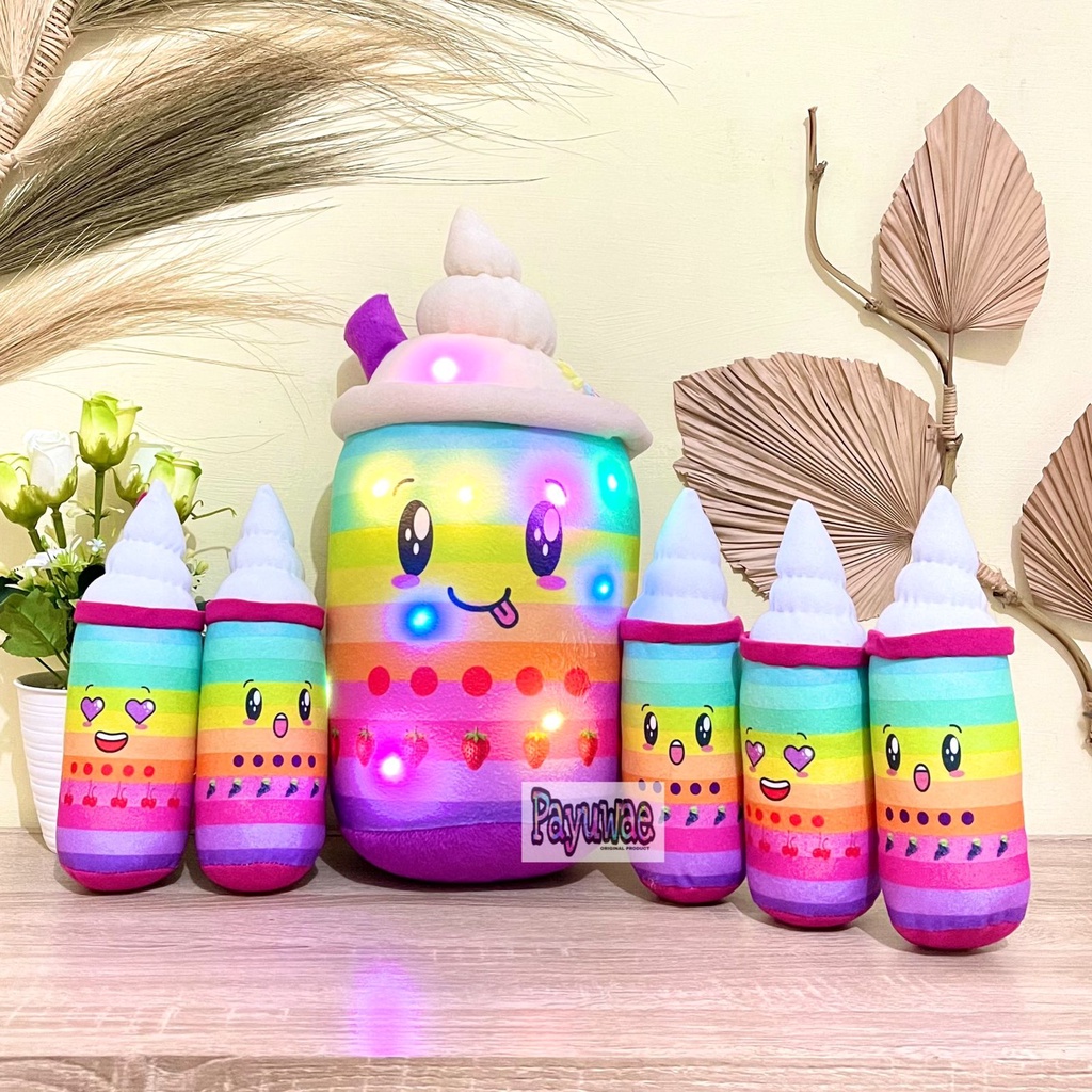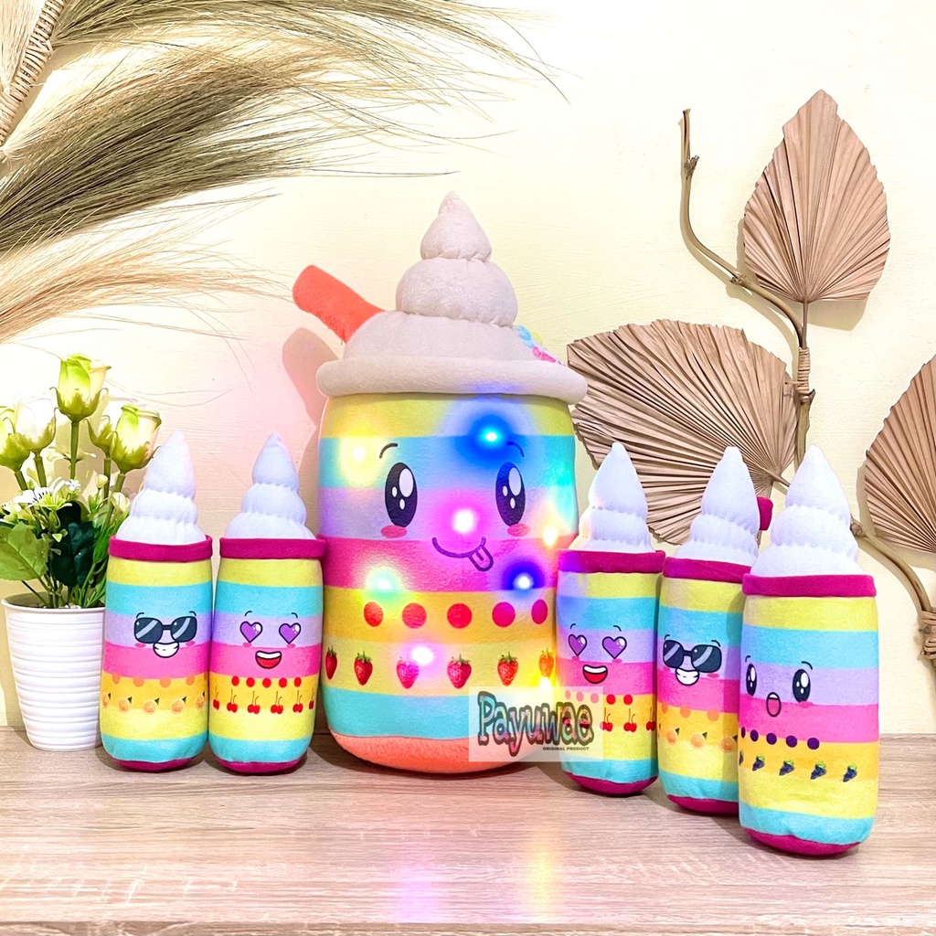 Boneka Boba Ice Cream LED Beranak 5 Induk 1 Lampu Nyala Bahan Berkualitas Ukuran Besar Boba Eskrim Rainbow Motif Pelangi