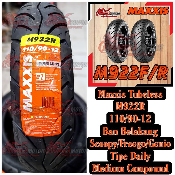 110/90-12 Ban Maxxis M922/M922R Tubeless - Ban Belakang Scoopy, Freego, Genio New - Ban Motor Matic/Scooter Ring 12 TL
