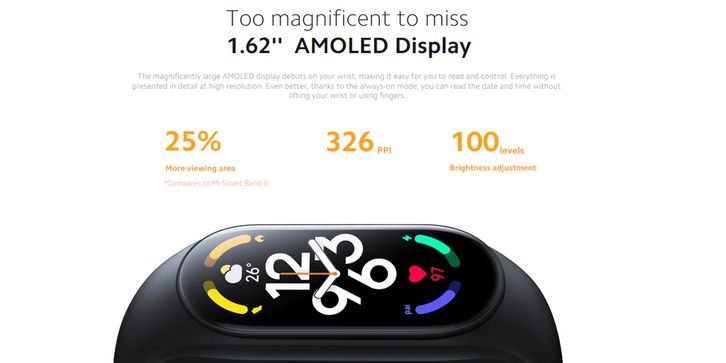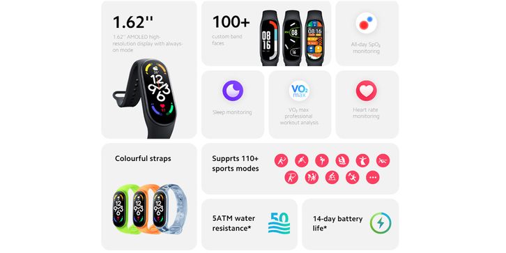 Xiaomi Mi Band 7 Smart Bracelet | 1.62" AMOLED | 180mAh Battery | 30 Sport Modes | 5 ATM Water Resistant