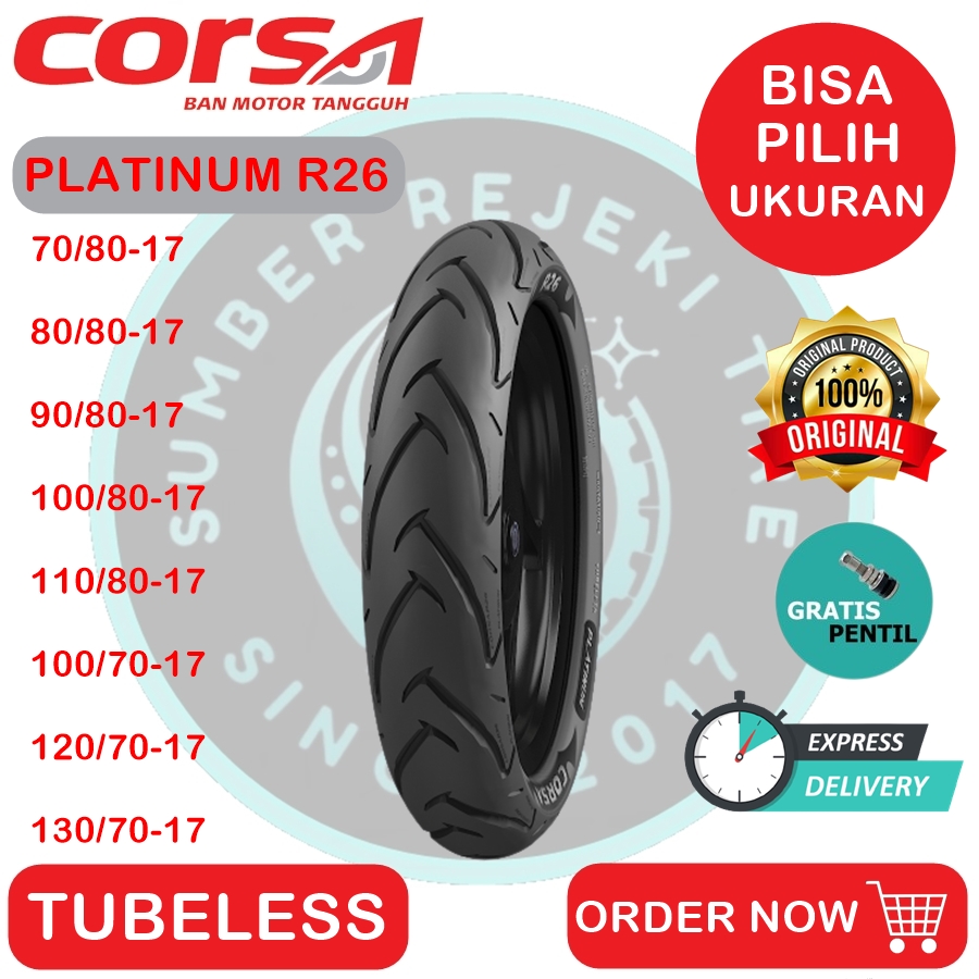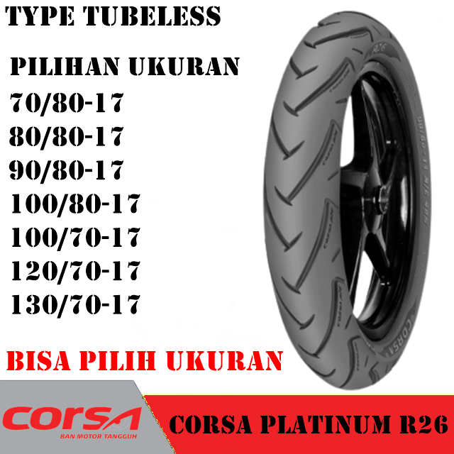Ban Luar Motor Bebek R17 CORSA R26 70/80, 80/80, 90/80, 100/80,100/70 Tubeless Ban Motor CORSA Ring 17 BISA PILIH UKURAN