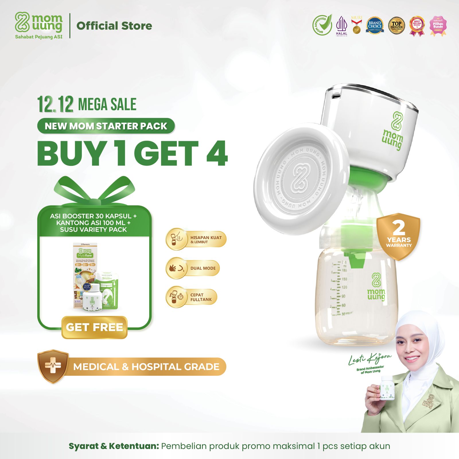 [12.12 MEGA SALE] BUY 1 GET 4 - Mom Uung Pompa ASI Portable FREE ASI Booster 30 Kapsul + Kantong Asi 100ml + Susu Variet
