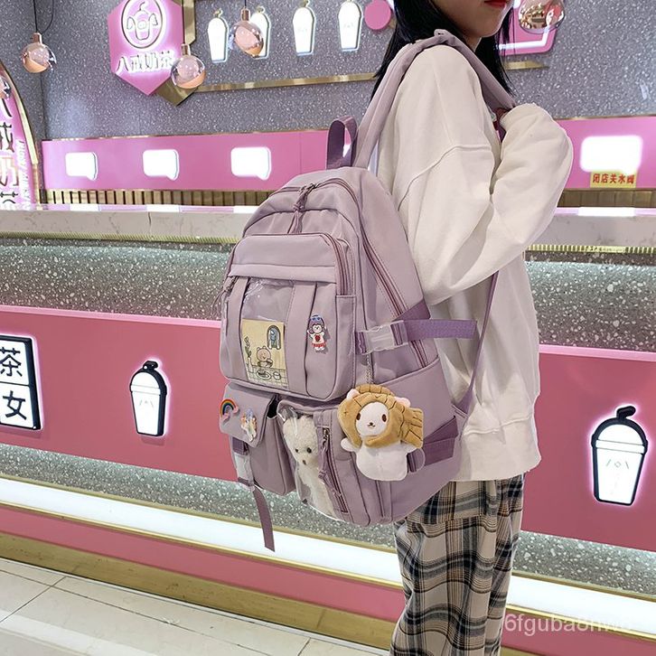 Purple Nylon Backpack for Women Large Capacity Backapck 2021 New Student Travel Rucksack Girl Multif
