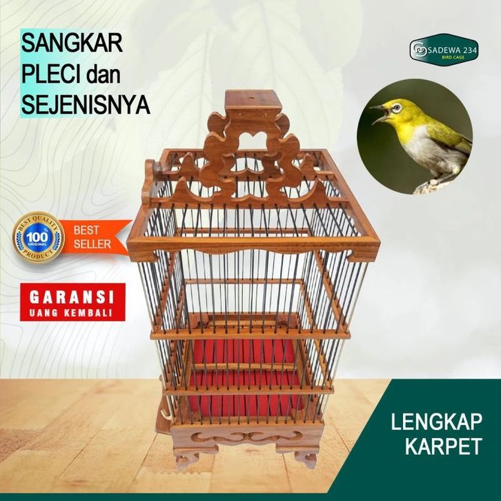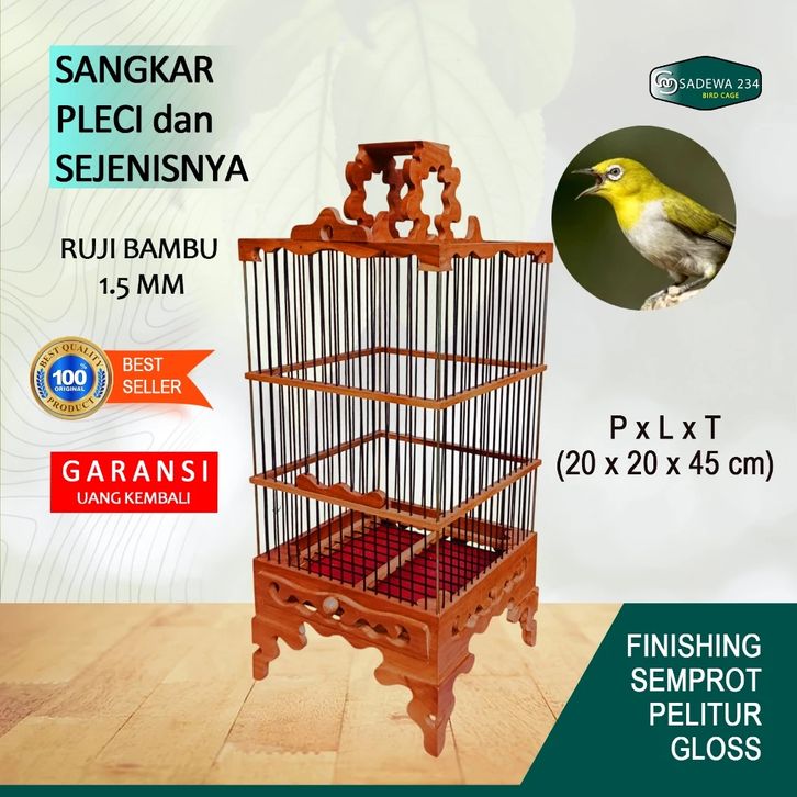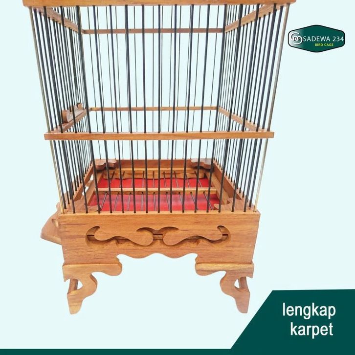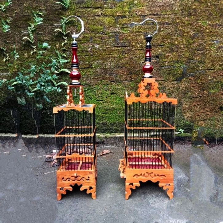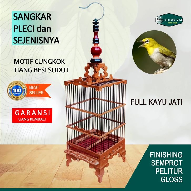 Sangkar burung pleci sogon kayu jati masih mentahan motif cungkok