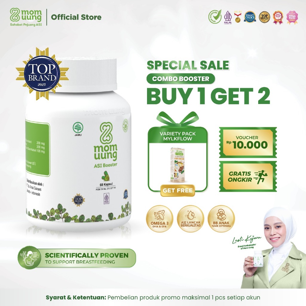 [SPECIAL SALE] BUY 1 GET 2 - Mom Uung ASI Booster 60 Kapsul FREE Susu Mylkflow Variety Pack 3 Sachet