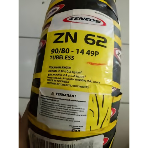 Sepasang Ban Motor Matic ZENEOS ZN62 80/80 - 90/80 -14 Tubeless Original Produksi Terbaru