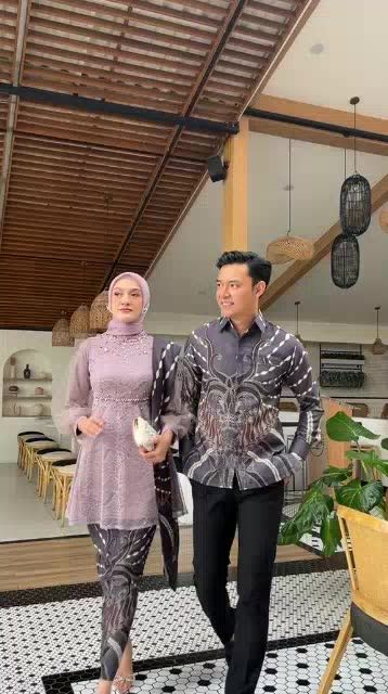 Kebaya Couple Modern Nadine – Baju Batik Tunik Set untuk Wisuda, Lamaran & Tunangan