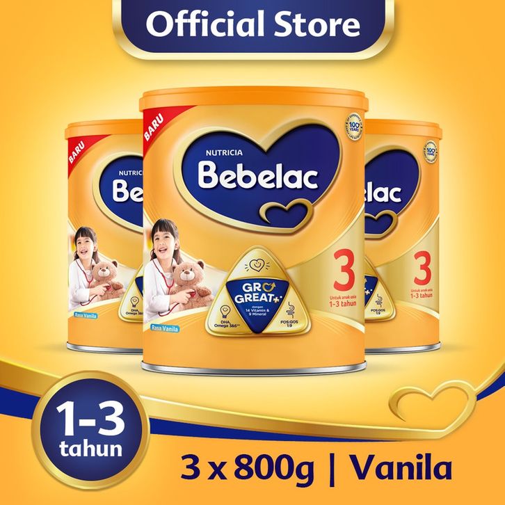 Bebelac 3 Vanila Susu Pertumbuhan Bubuk 800 gr x 3